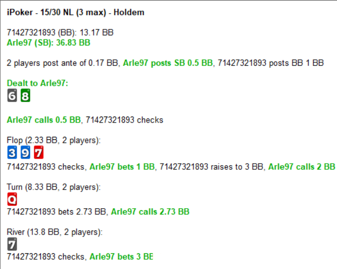 Esta mano es un poco peculiar para enfrentarse a un regular de 5s en iPoker. Me la encontré mientras revisaba algunas manos pendientes que tenía acumuladas desde Navidad. La analizamos en el grupo de estudio, pero cada uno tenía una opinión diferente, y la verdad es que ya no recuerdo bien en qué conclusión quedamos. La tenía pendiente de subir para recopilar más opiniones.